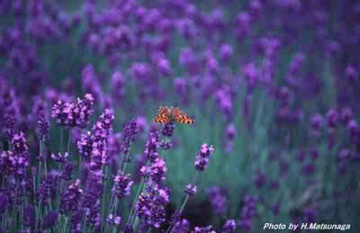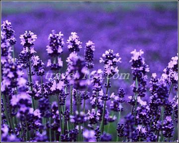 熏衣草是一种馥郁的紫蓝色的小花。又名「宁静的香水植物」。原产于地中海地区,性喜干燥,花形如小麦穗状,有着细长的茎干,花上 覆盖着星形细毛,末梢上开着小小的紫蓝色花朵,窄长的叶片呈灰绿色,成株时高可达80公分,通常在六月开花。每当花开风吹起时, 一整片的熏衣草田宛如深紫色的波浪层层迭迭地上下起伏着,甚是美丽。