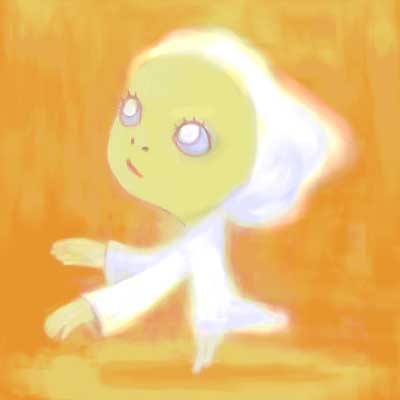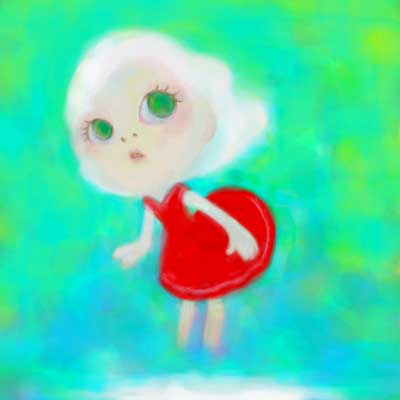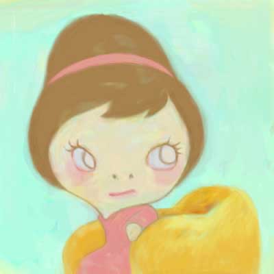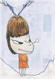 大头女孩是奈良美智的标志。这些女孩往往带有天真与反叛的特点。反映孩童的正反两面性是奈良美智的艺术的立身之本。