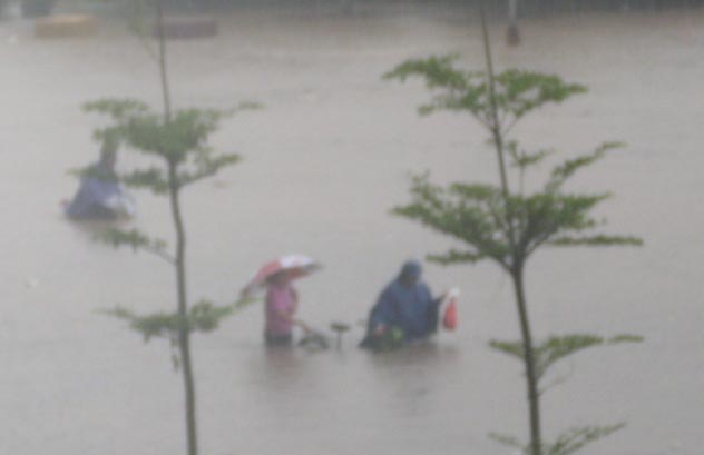 要相当小心才行的,水都到大腿了,如果下面有洞我就・・・