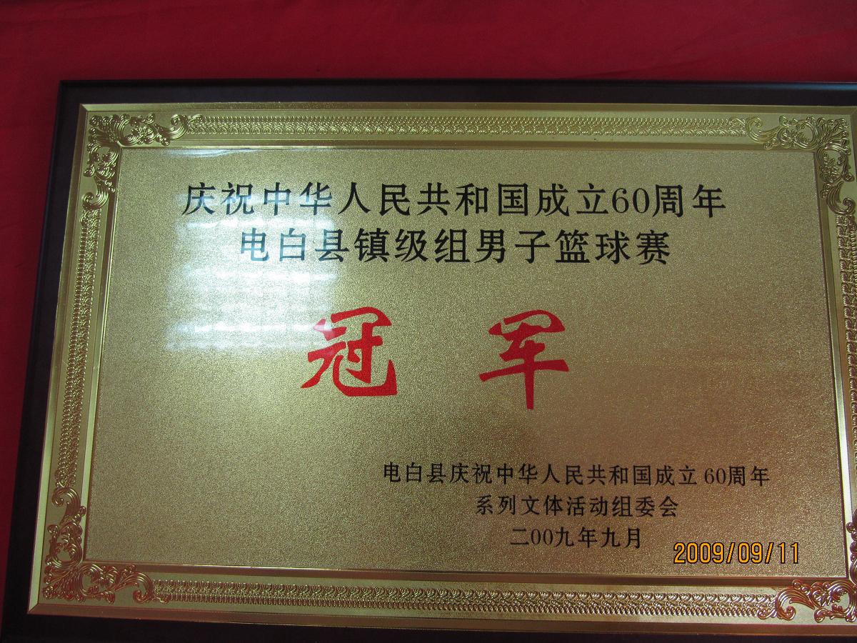 热烈祝贺树仔镇篮球代表队夺得电白县庆祝国庆60周年篮球赛冠军!