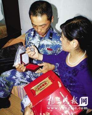 12时许,从北京飞来的航班抵达盐城南洋机场。舱门打开,身着海洋迷彩服的王震双眼红肿地走出机舱,杨超副政委和二叔早已站在通道前迎接,“爸爸没有了,你要坚强……”王震二叔哽咽着拍着侄子的肩膀。在旅客出口处,当黑色的挽章戴上自己的右臂,一直深信父亲还活着的王震,此刻终于明白,慈祥的父亲确实已离开了人世。50多天来对爸爸的深深牵挂,瞬间化为无尽的悲痛和哀思,他再也抑制不住心中的悲痛,紧紧地抱着二叔和婶婶失声痛哭……