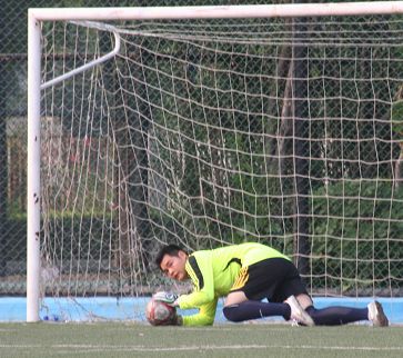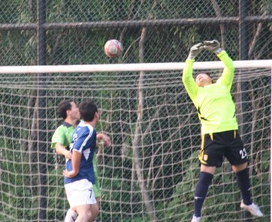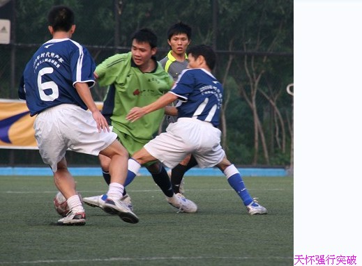 本轮电白打比战,对电白同乡队来说是屋漏偏逢连夜雨,主力后卫林德进因故缺阵,在首发阵容上只能将中场大将温清晖顶替,中场由潘俊鹏与队长谢天怀搭档,刘旭强在最前边游弋,另外两个后卫依然是林凡与邓志勇,门将是廖伟春,从布阵来看,电白同乡会先做好防守在打反击。反观一线网络本周的重视程度是空前的,小组赛以来,该队从未有来齐球员,而本场比赛所有12名队员齐齐到场,首发阵容也是排出最强的三叉戟攻击型阵容,门将有李耀毅、后防线由左到右分别是马燕飞、段超、杨志武;中场由陈志文领衔,前场是队长潘锴昌与李宝华,这样的攻击型组合,完全是志在必得之势。比赛准时开场,由于电白同乡将重点放在防守上,一线网络的中场过渡完全被电白同乡两名防守型中场潘俊鹏与谢天怀破坏,而右边杨志武的进攻刚巧又是遇上对方两名中后场谢天怀与邓志勇的联手夹击,根本无法发挥往常的威力,潘锴昌与李宝华不得不频频回来接应,而电白同乡战术到位,两个边路的反击最有威力,双方在上半场上虽然各有攻防,但双方都没找到致命一击,上半场双方0比0握手言和。