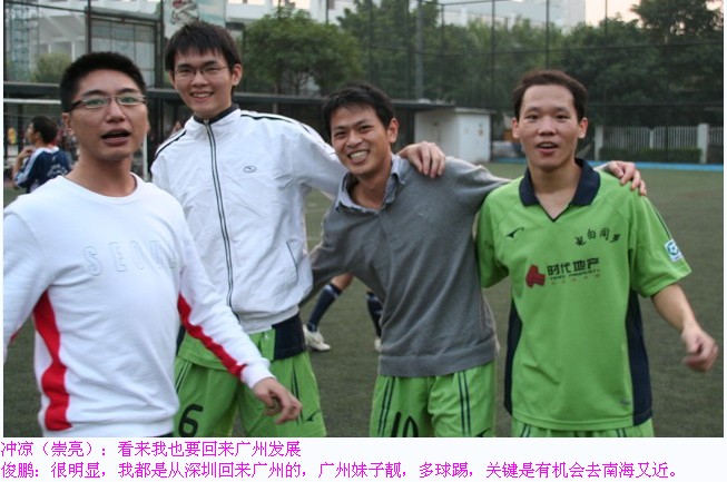 上周末在海珠区宝岗球场进行的一场2009时代地产杯1/32淘汰赛中,上演一场精彩的电白打比战,两支来自电白的球队进行一场残酷的淘汰赛,球员都是来自电白老乡,双方球员知根知底,最终更加年轻的电白同乡2比0击败一线网络,历史性进入市赛32强,将继续肩负电白足球使命,在市赛征程上继续前进!