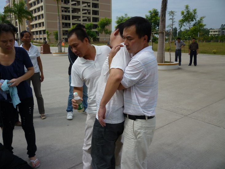 事发2009年11月05日下午五点左右,茂名市电白县第一中学,在校一名高一学生参加学校组织的拔河比赛,因为体力不支晕倒在地上。学校既然组织活动,但却没有安排一个老师在现场。其他一起参加活动的同学见该学生晕倒之后,一位同学最先拨打了电白县人民医院120,当时是五点十分左右,经过再三拨打120,救护车于五点三十分左右才到现场,电白人民医院到电白第一中学路程不超过十分钟,最多不超过五公里。但在之间的二十分钟内,是最佳的抢救时机,学校没老师在场指挥,校医已下班(据学校说法),导致该学生在120到达现场时证实已经死亡。随后班主任才出现在现场,打电话通知死者家长到学校事发地点,作为家长,就算是抱着一丝幻想的希望也好,或是一时接受不了这个事实,坚持要120把自己的孩子送到医院抢救,但已经改变不了事实。