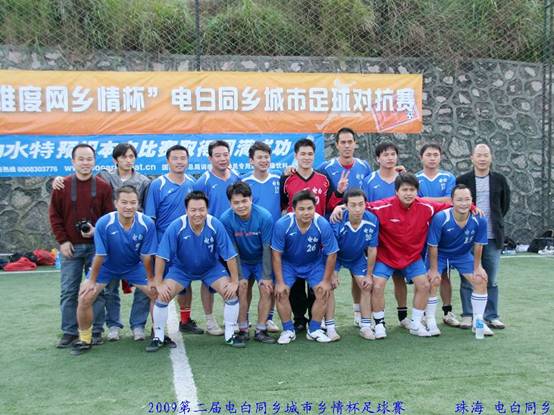 近日在深圳鹏城上演一场电白人齐聚的大型联谊活动,这就是2009第二届电白同乡城市乡情杯足球赛,分别有广州、深圳、珠海、电白的四个城市足球队爱好者共同参与,借助这次聚会,四个城市的电白人齐齐共聚一堂,进行了浓浓的乡情联谊交流,促进珠三角地区电白同乡的联谊,加强电白同乡会的发展和交流,在电白同乡各界精英的大力支持下,本次“乡情杯”足球赛得以成功举办。第一届“乡情杯”于2008年5月成功在珠海举行,有电白,广州,深圳,珠海四支队伍参加,并由珠海同乡队取得第一届冠军。为了筹划好今年的比赛和影响力,在春节期间四个城市负责人就开始商量筹备与招商,今年比赛吸引更多电白人参与,而作为电白人创办的网站――维度网更是大力支持本届比赛,创造一次让在家和外出的电白同乡能欢聚一堂的机会,据悉明年赛事将安排在亚运城市广州,与亚运同行,扬电白风情!