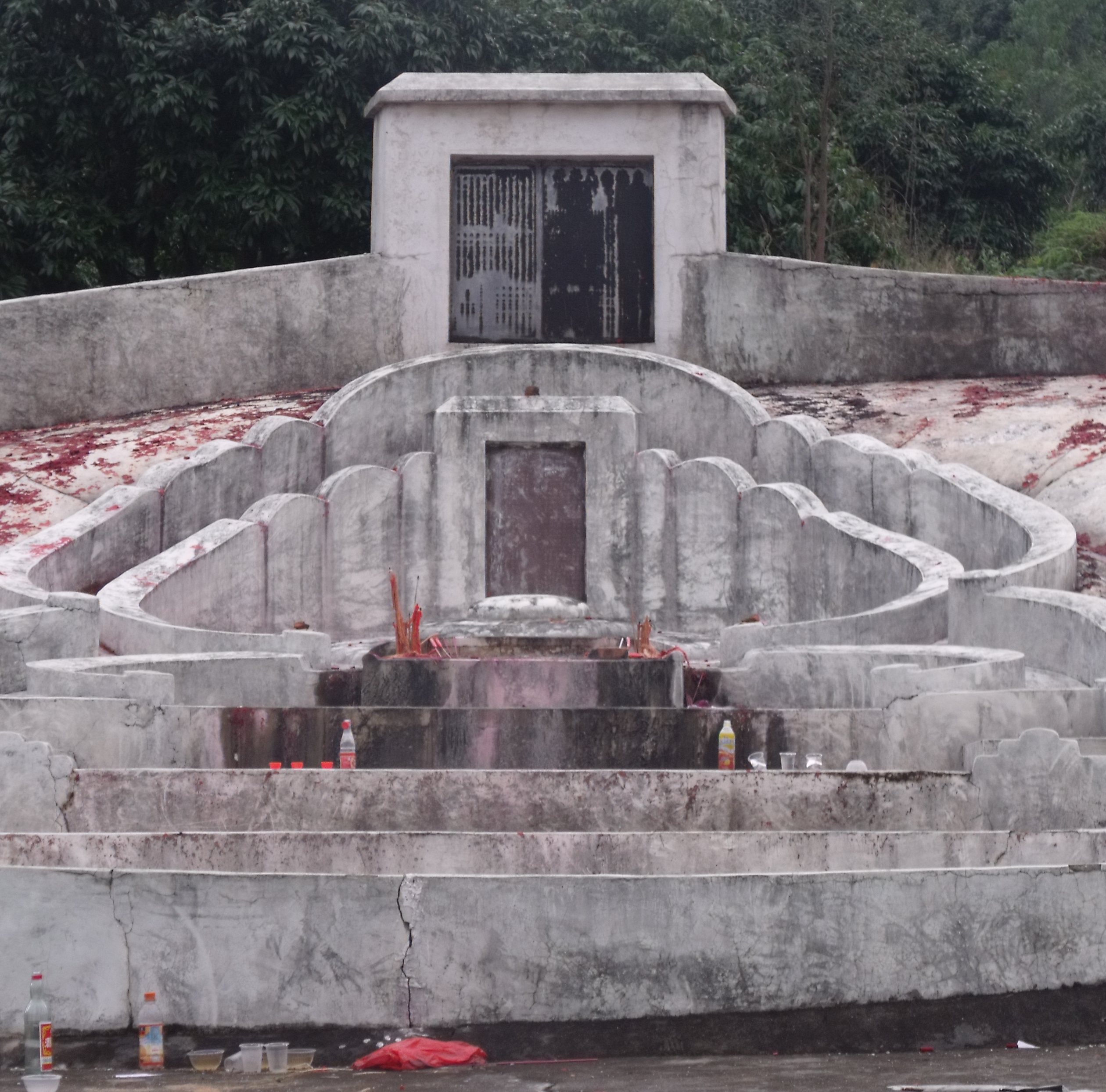 今天受朋友邀约去看看是否结穴,到了一看,心里就明白这里的确是结了个“横龙横局”的小小结。可是李氏祖墓并不葬在结穴的位置,而是只葬在附支的斜坡里,立向又不合,斜斜的,很难看。心想:怎么会这样子的,听说从南海迁骨过来时,三四百年的骨还是金黄色的,可见开族始祖的确福地福人居,怎知今日迁移至此大姓始祖却葬得这样差劲,心里呜呼不己…