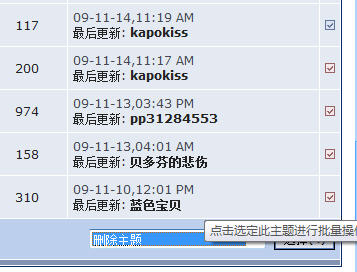 MingNi 管理员 管理员 注册 2005-04-12 消息 130 反馈评分 25 点数 11 性别 男 2010-01-16 #19 违规贴已删除,相关用户已永久停止,升级′小彻、二马先生为本版版主,如果发现大量重复贴请立即删除并报告管理员封停用户。 批量删贴操作方法如图: [attachmentid=229813] 附件 567.jpg 27.3 KB · 查看: 426