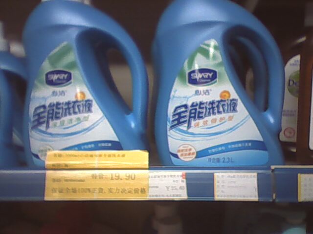 [attachmentid=234466][attachmentid=234467]昨天在水东海宾的惠多多超市里想买些洗衣液,看到“心洁全能洗衣液”标价超值价25.80元,在销售员的鼓吹(说:现在搞特价,以前是卖40几元的)下买了几瓶;今天无意中在西湖这边的惠多多商店里却看到了这样一个同样商品的标价“特价19.90元”,惊讶,一瓶竟然差价6元。后悔,想换其他的商品没门,到物价、工商投诉未果。今特意告知大家小心上当。