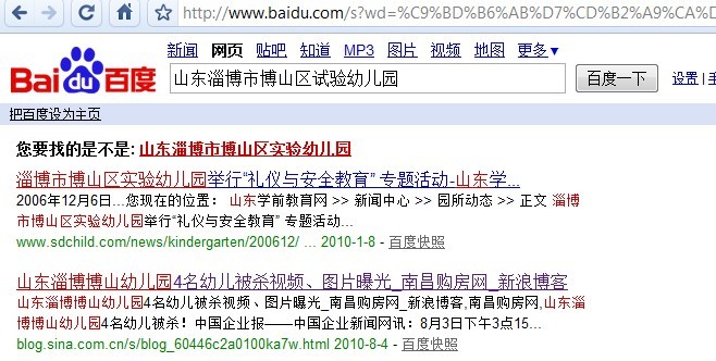 估计百度搜索以下关键字是没有什么新闻的:山东淄博市博山区试验幼儿园
