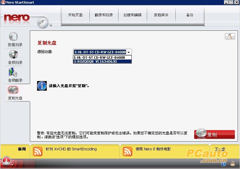 对于情况4、7,直接用NERO的镜像刻录功能即可,如图,先打开NERO,选择“翻录和刻录”,再点选下面的“复制光盘”