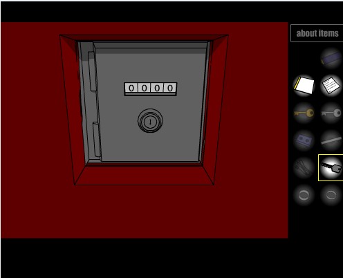 找到十二件的时候就要注意了。把东西组合了放录影。注意他出现的一个十字符号。在那点几下就会有保险柜出来了。那钥匙就是开保险柜的。保险柜的密码就要你们自己猜了。为什么是四位数的密码?四位最常用的密码是什么?自己想