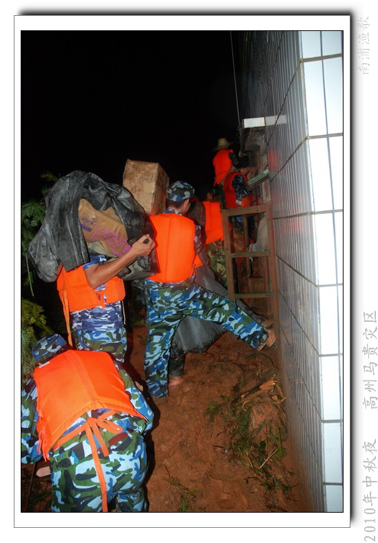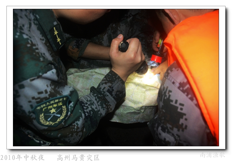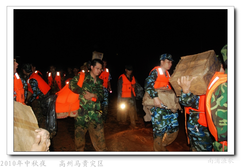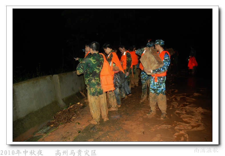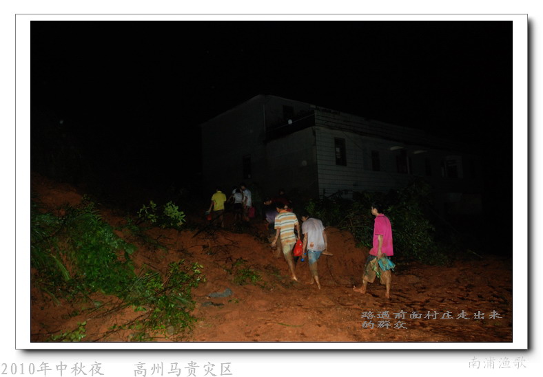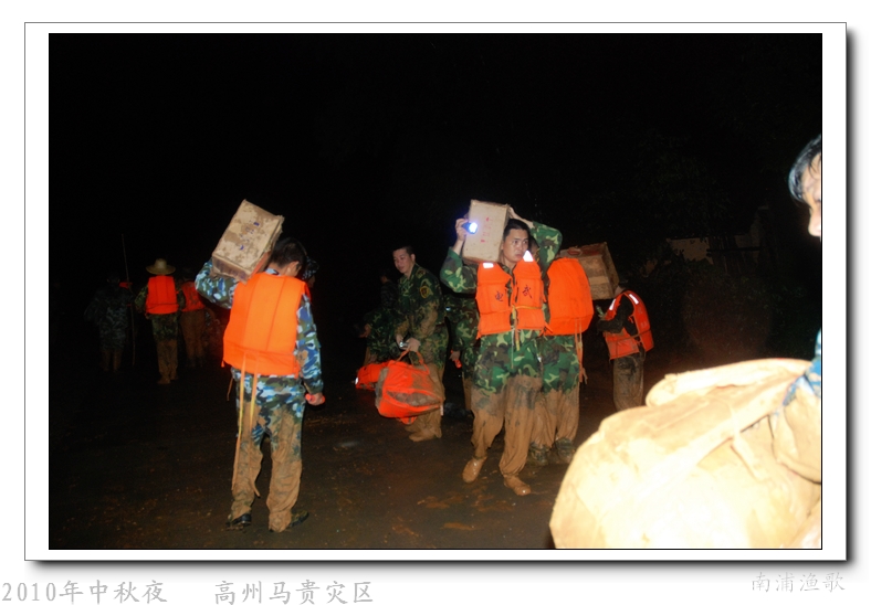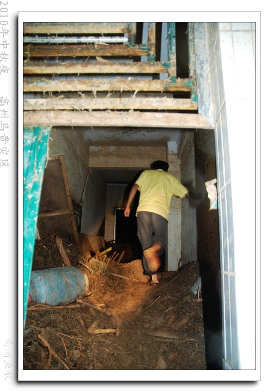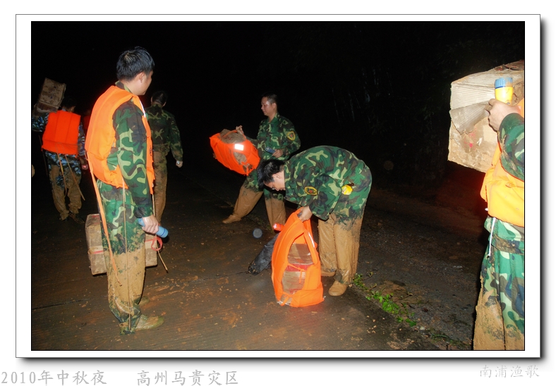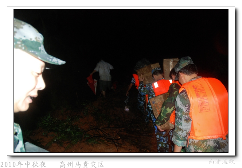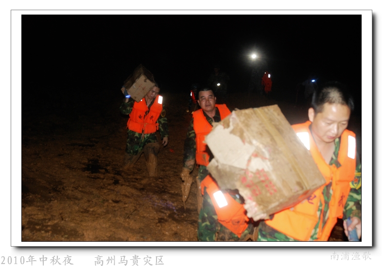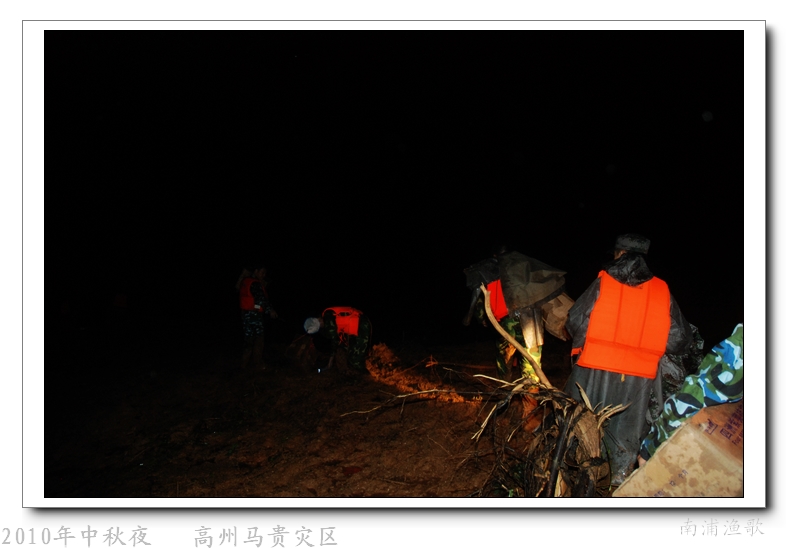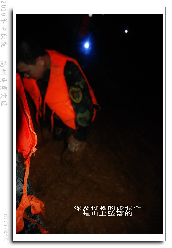 多余的话不说了,有图有真相,10年9月22日下午三点半出发,当全国人民在吃月饼赏月的时候,经过三个半钟的长途跋涉,晚上七点我们到达了马贵。匆匆吃了几口快餐,就受领了任务,送干粮给四公里外的一个学校里受困的灾民。这短短的四公里路全是塌方,其中的艰辛就不说了,还是看图吧