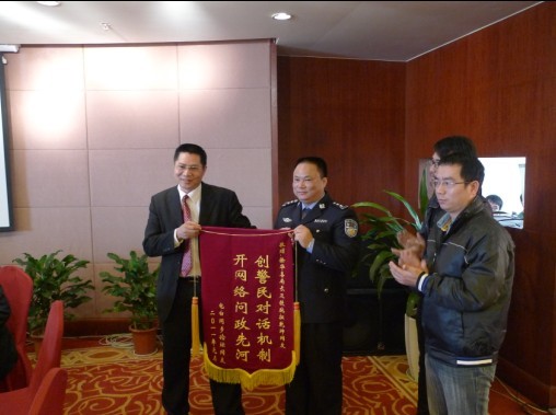 县公安局政委吴平受徐局委托接受锦旗