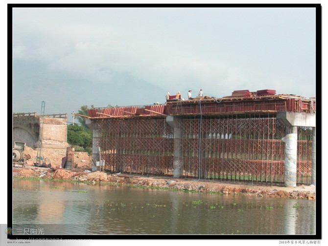 两年了,从断的那一年开始,就盼着桥能重建起来!以前没断的时候总没感觉桥的存在,以致在前桥还在时没想到要去拍拍这条日夜为人民服务的桥。所以从断了那天起,就拿起相机不停地按快门,快门按到今天,终于出现了一个令人惊喜的一个画面!桥通了!不管两年时间的长短,也不管中间发生些什么传闻,再或者大桥修建为何有时停滞不前,这些都不重要了,重要的是终于通行了!