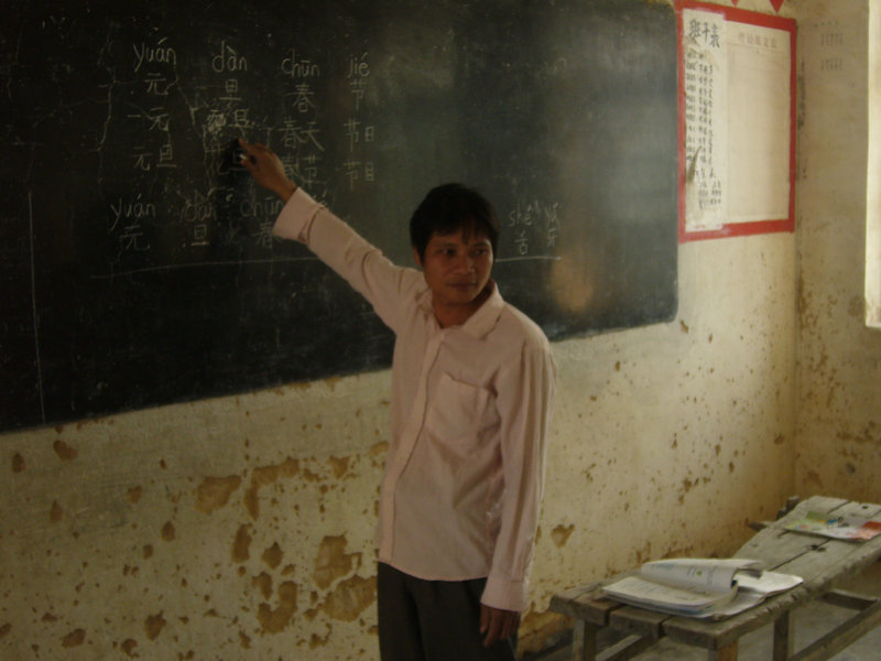 听到这里,我们一行人心都渐渐沉重起来。继续了解到,李老师每个星期的课时都20多节,有时候一站就是一整天,就连我们平常的老师也感到十分的累,每次看到他汗流浃背的样子,我们都很痛心,但是没办法,学校只有四个老师,课程不这样安排不行。已经很照顾李老师了,李老师也没有任何怨言,工资少,劳动强度大,虽然只是教书上课,对于一般老师都很吃力了,对于他更是一种负担!当校长把话说到这里,团友看见了校长眼中的泪光闪闪地涌动,我们都知道――那是一种现实,也是一种无奈。