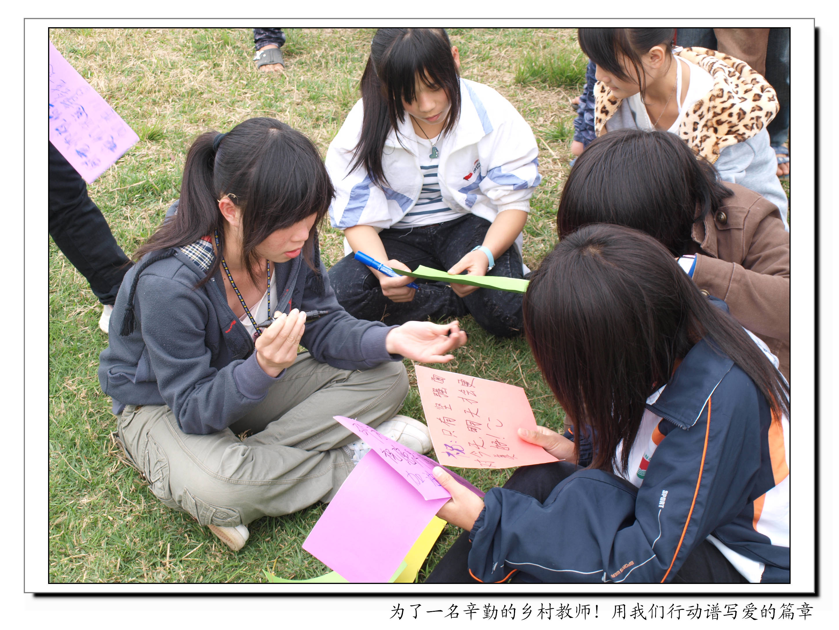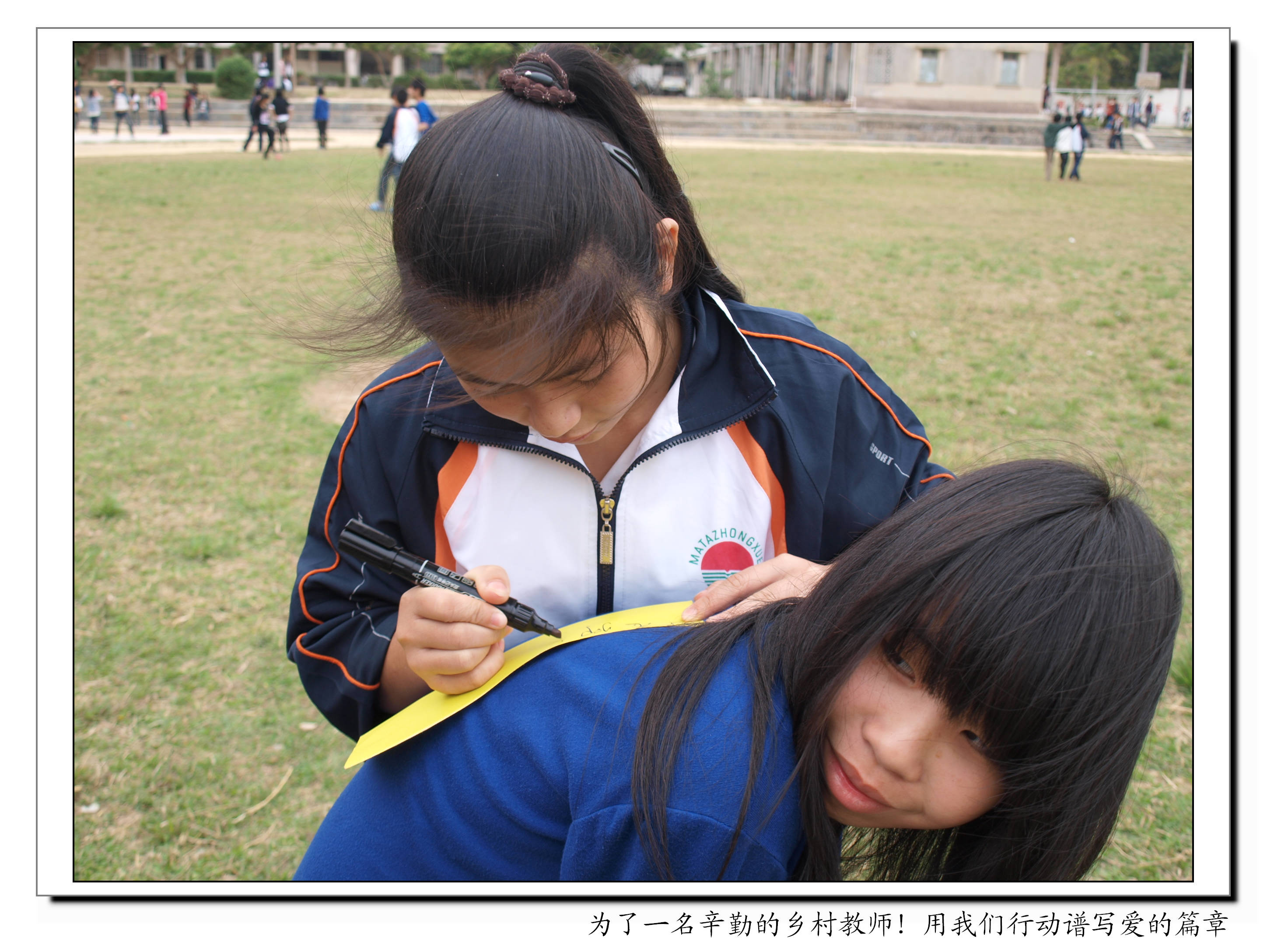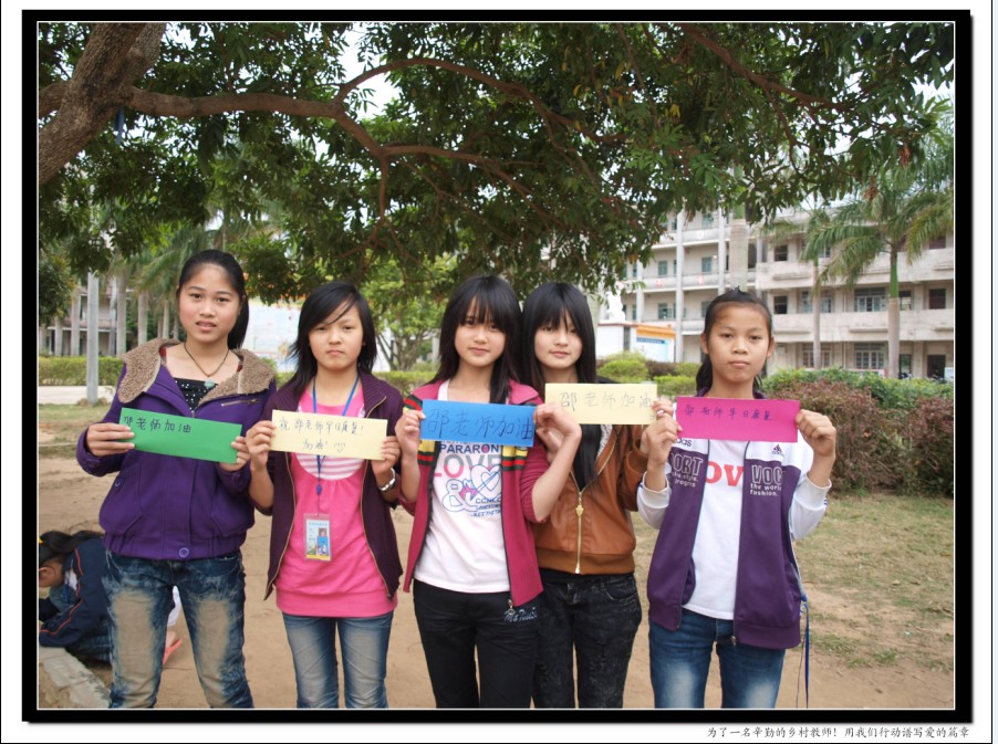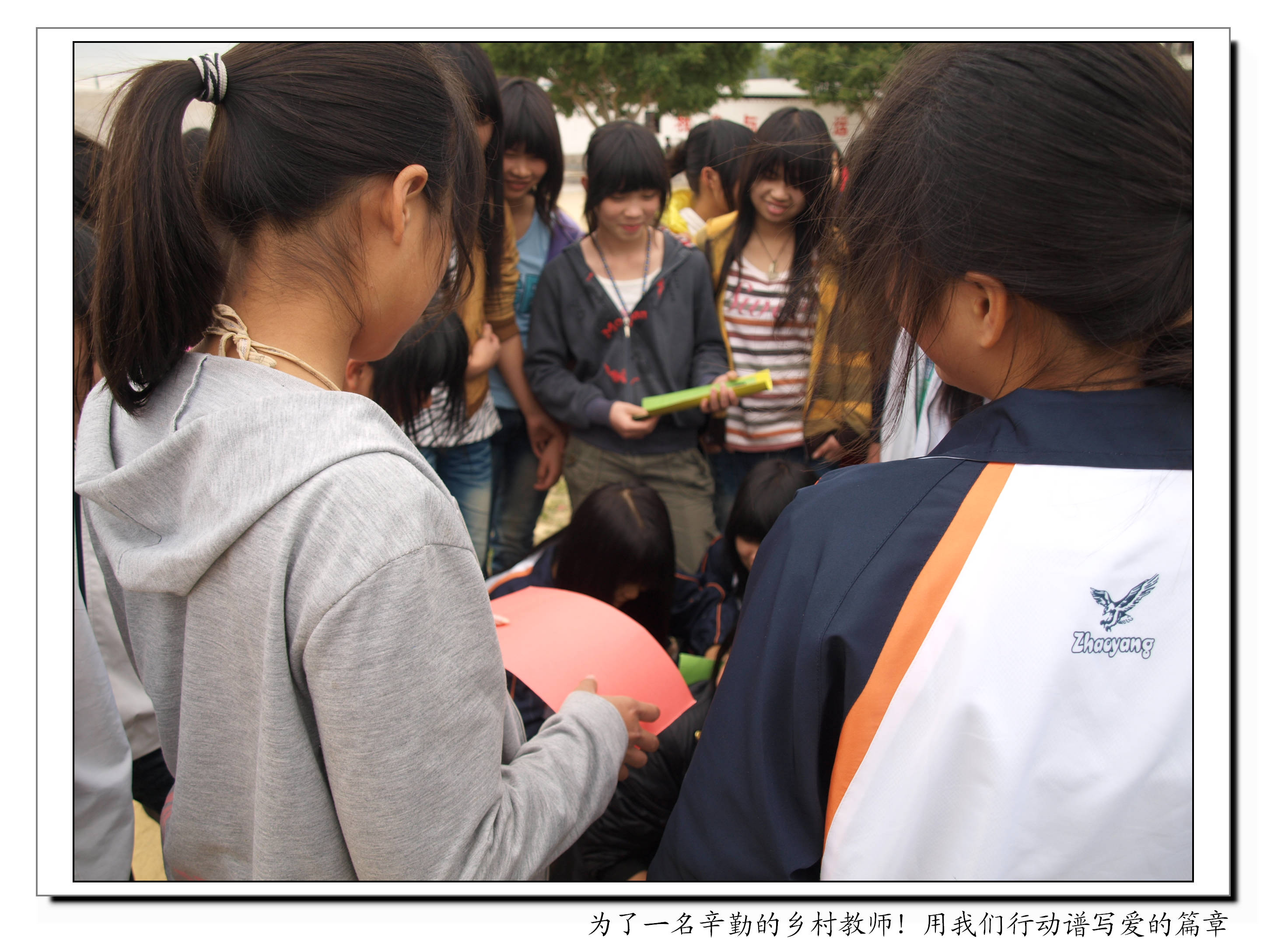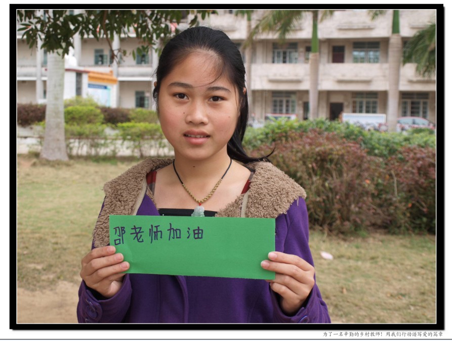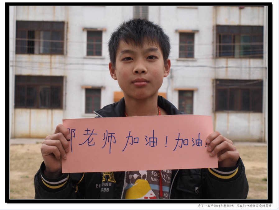 QUOTE(游侠918 @ 2011年03月06日 Sunday, 10:15 AM) 祝邵老师早日康复。好老师人助神佑。 图片上写的字好像同一人手笔,且那些学生表情有点…… [snapback]3108737[/snapback] 卡片上的字都是我写的,卡纸也是自己做的,由于当时有这个让学生拿着祝福语的拍照的想法,所以急着自己做了些,星期五那天自己就带着学生去拍了几张。要说明的是,祈福不是学生自发的,但看到老师这样做的时候,他们也非常踊跃。现在校长获悉了,准备下个星期让团委组织学生一起开展这项爱心活动,我相信不管这个活动形式如何,大家都是很支持的! 还有关于学生拍照的时候的表情,很多同事说跟楼上的一样!可是我觉得支持邵老师,为他打气我们就不要太悲,因为照片的祝福语都是送给邵老师一个人的,让他看到曾经在学校看到那些灿烂可爱的面孔,他会更坚强起来。当然,照片传到论坛上,网友们也会看到会做出各种猜想,不过我觉得孩子的真心的善意超乎了所有不必要的疑虑!