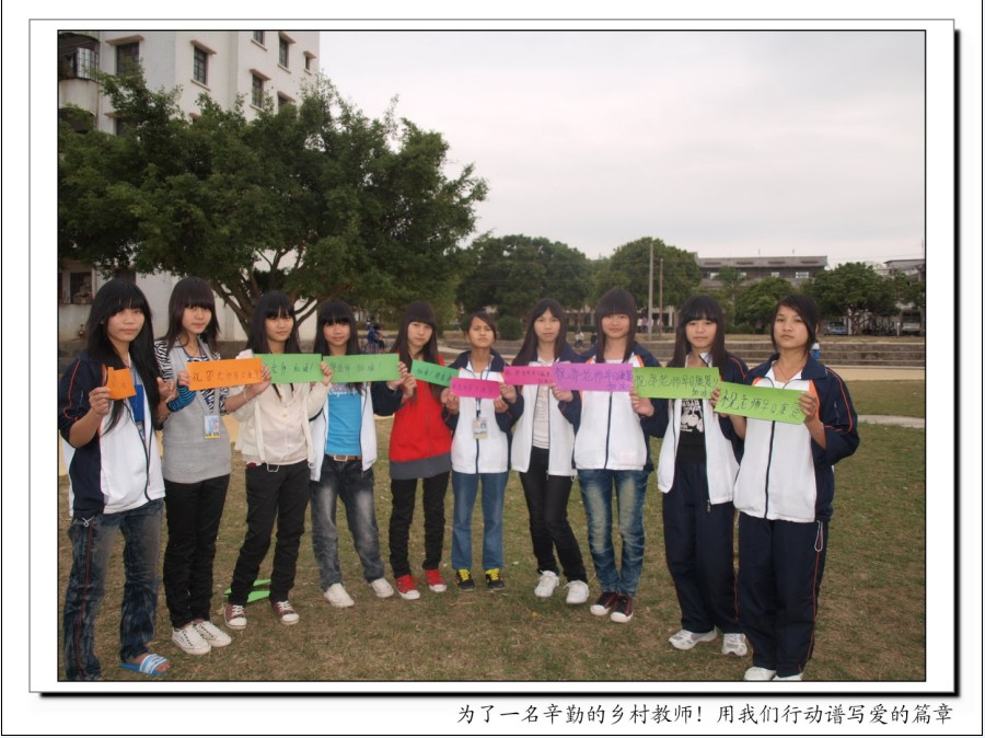大树上的猴子 副教授 注册 2011-01-24 消息 1,877 反馈评分 0 点数 61 2011-03-07 #35 今天早说要给老师加加油,同学们很踊跃,看到他们的 确实很感动 附件 1.JPG 537.9 KB · 查看: 516 2.JPG 401.7 KB · 查看: 536 3.JPG 442.3 KB · 查看: 497 4.JPG 432.5 KB · 查看: 485 5.JPG 734.5 KB · 查看: 490