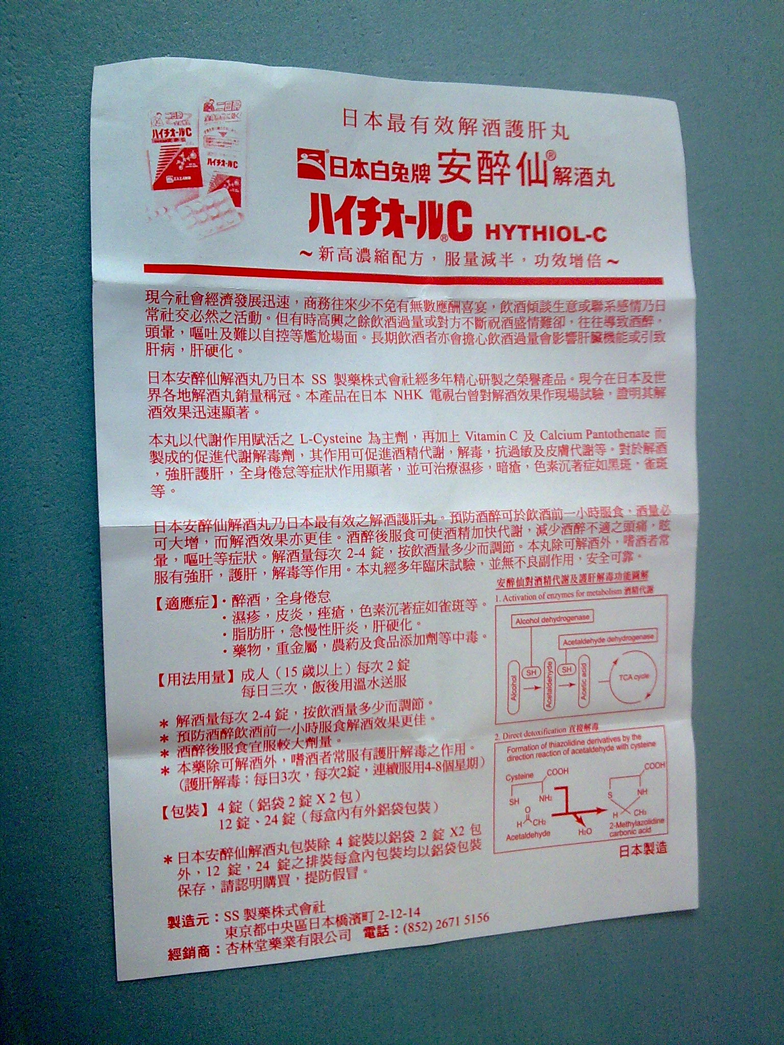 yuka 博士生 注册 2010-06-10 消息 1,214 反馈评分 0 点数 0 2011-03-16 #4 QUOTE(二马先生 @ 2011年03月15日 Tuesday, 09:20 AM) 这个感兴趣,好像有一种日本货,喝到断片第二天也不会头痛胃不舒服的。 不知道是不是这个,不知道这些药大概要多少个小时才能排出体外,主要通过哪些器官,副作用如何。 [snapback]3112446[/snapback] 论坛里有一个网友试过,效果确实不错。我自己感觉美国、德国、日本的药品是很不错,香港的都比不上它。 [attachmentid=257585] 附件 图像979.jpg 1 MB · 查看: 328