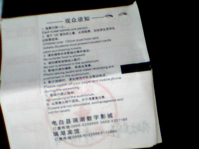 因为是刚看到那个什么《单身男女》有抽奖活动,于是就买了两张,刚上到二楼零食总台,就告知可以抽奖。一直以来我觉得抽奖就是基本的坑爹活动,于是就叫MM去抽,结果抽到两个安慰奖,(意料之中)是两张5元代用卷,就是买票可以当现金支付,有使用期限,10天的时间。