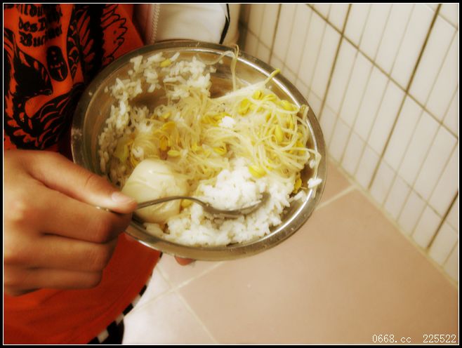 学生吃的是豆芽和一个水煮蛋。。。。。。。