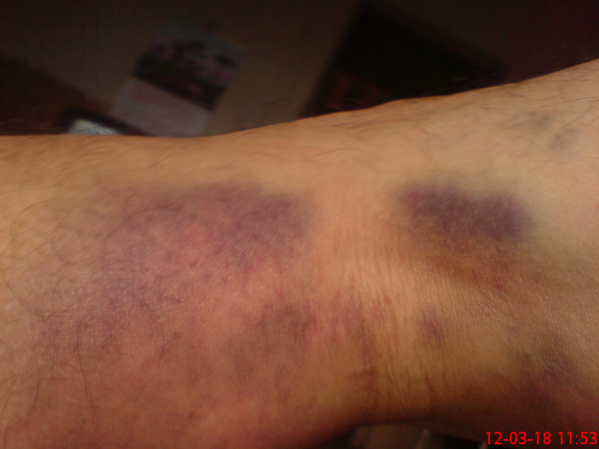 昨天是旦场红花3月3年例,对年例热闹我没兴趣,目标是向一位广州回来的师兄学习,这位师兄是17号上广州聚会才认识的,到他家后,首先送给我很多特为我准备的宝贵资料,再向我传授了很多宝贵的手法、心法,感恩这位师兄无私奉献。 后来他有位电城的亲戚来吃年例,来得也较早,男,40岁左右,在家做海,身体健壮,他在看我们交流,我说你想不想试试,他说好啊,先问他身体是否有什么问题吗,他回答没有,身体很好,下面是我拍出的成果。 [attachmentid=292598] 这是右手背上拍出的大泡,大肠有大的问题,大便不顺。 [attachmentid=292599] [attachmentid=292600] 两个手肘也拍出了团团黑痧,心脏也不好,后来他说近几年远一点远距离都不勇气跳了,有时心也跳得有点乱,证明了我的判断。