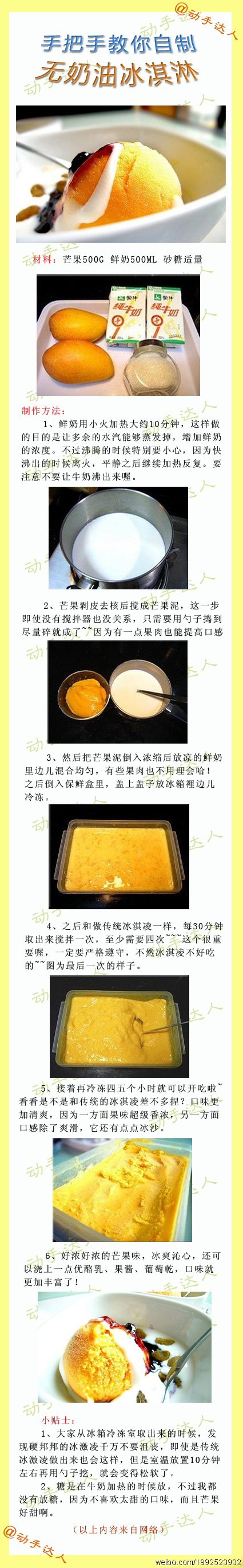 【DIY一分钟做冰淇凌】 方法: 1)提前将买来的水果味果冻(大约4个大果冻约200克左右)放入冰箱冷冻室里冷冻1夜。 2)将冻好的果冻取出,切成小块儿,放入搅拌机中,倒入鲜奶油(220ml),搅拌1分钟即可。