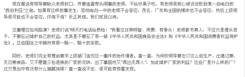 现在据说有领导要胁众老师封口,并要追查带头闹事的老师,不给好果子吃,有老师很担心被设法贬到某一些电白的“西伯利亚”之地。如果有这样的事发生,恐怕电白一中的老师不会答应,茂名、广东和全国的媒体也不会答应,然后上级领导很可能也不会答应。你信不信?反正我信。我们拭目以待。