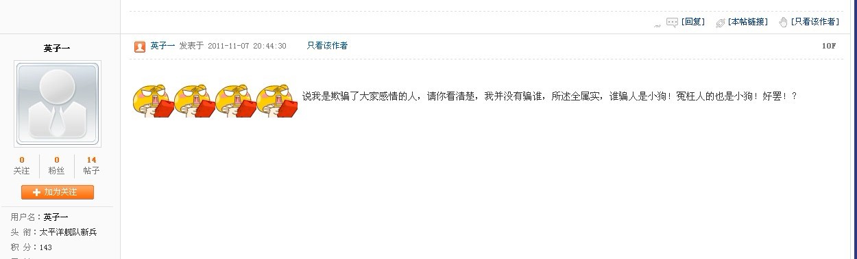 说我是欺骗了大家感情的人,请你看清楚,我并没有骗谁,所述全属实,谁骗人是小狗!冤枉人的也是小狗!好罢!?