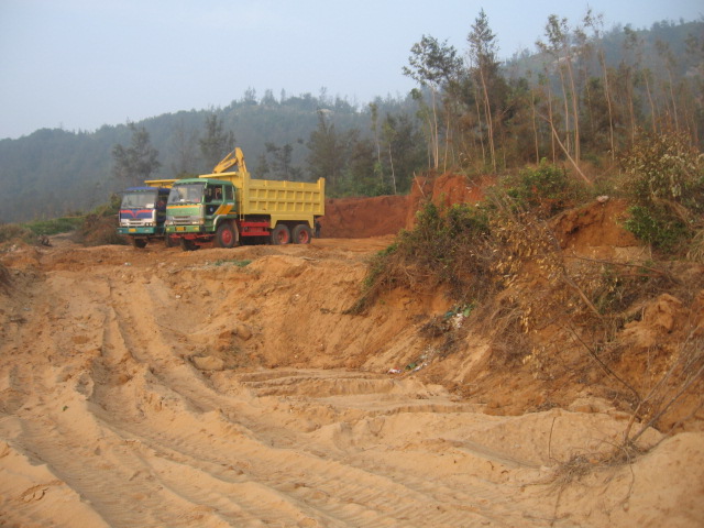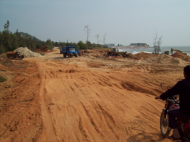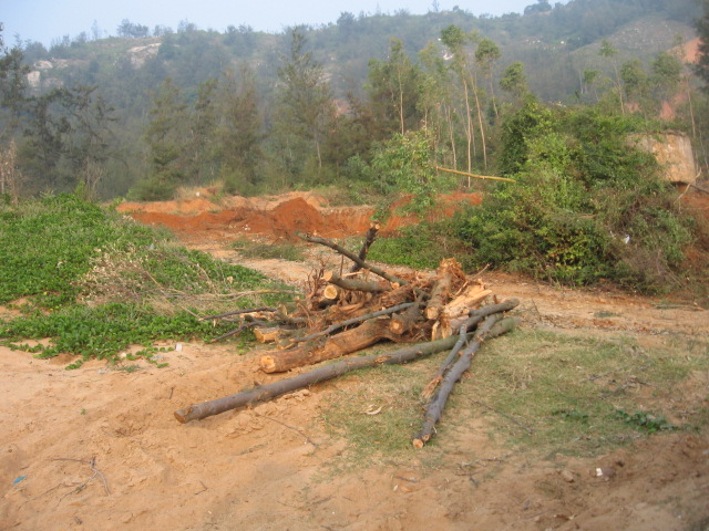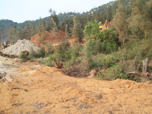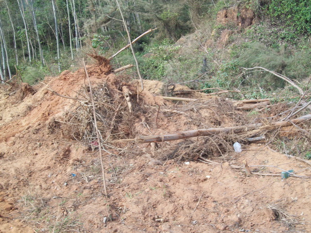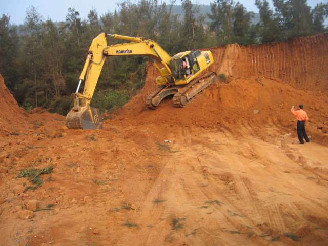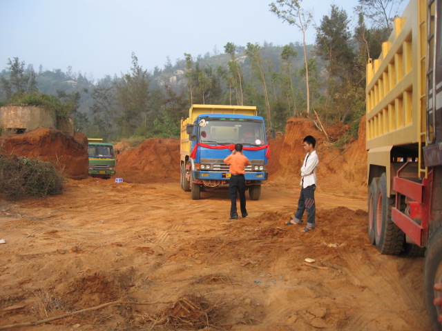 2011年11月24日星期四,早上钩机和运泥车又来了,严永生说已经从茂名市和电白县搞好手续可以砍树挖泥了,细查一下才知道原来昨晚他和管理区的党员开会,要大家党员签名就可以毁林卖地了。我们在万般无奈的只有打电话给县委书记李玉楷,李书记叫我们打电话给电城镇委书记吴建中。我们打电话给吴建中,他说“我已经处理啦,他们现在没有毁林啊,以后你们上访要合理合法才可以。”我们告诉他现在严永生还在继续毁林挖地,他都还不信。后来在我们再三恳求下他才说等会派人去看看。严永生他们又砍下一大片树林,我们左盼右盼还没有镇政府人过来;我们全体村民忍不住愤怒,自发出来用血肉之躯塞满运泥车的路,并且站在钩机底下制止了钩机挖泥后,吴建中派来的一个不敢报名自称是党委的人才到来,叫他们收工。