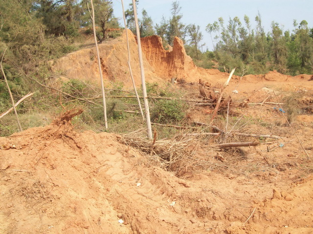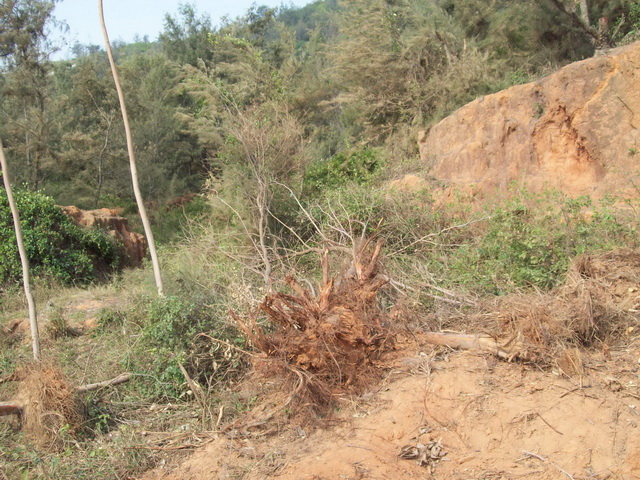 在2011/11/15村委会主任兼支书严永生和茂名市曾经是茂名市人大代表的个体老板杨仕进官商勾结又毁林挖土卖,他们以地价2800元/亩,树苗补1500元/亩,共4300元/亩的价格购买防风林来毁林挖泥卖。在不理会广大村民强烈反对同时,又没有办理任何审批手续和林木砍伐证的情况下,叫来黑社会镇压村民,开来钩机强行毁林挖土来卖。后来在村民拼死阻拦下他们才暂时停止,之后大家一点已经有五六十棵被毁。他们说“今天人少明天再多叫黑社会人来,县里的当官是我兄弟谁都拿我没办法”