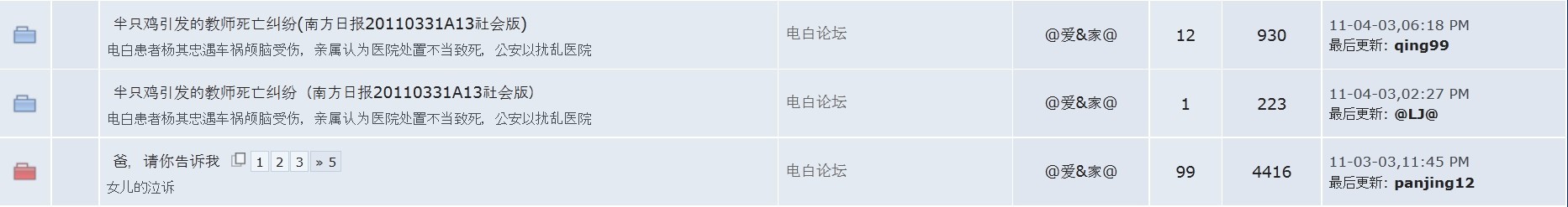 QUOTE(东澳夕照 @ 2012年01月11日 Wednesday, 10:59 PM) 楼主不要老在怨天尤人。那贴曾引起很大的反响,由于网络慢,小姑娘以为第一次发帖没成功,就连发了两次。网友的回复都在第一个帖子上。楼主看清楚了再发帖嘛! 请点击下面的网址。 http://0668.cc/index.php?showtopic=170442&hl= [snapback]3307147[/snapback] 我刚看到这贴是在电白论坛自己弹出来的,我也不知道原因,一个一年前的贴在没人顶的情况下会自己跑出来,我就看到的是一个回复,至于你说的这个网址我上去看了,确有其事。 QUOTE(东澳夕照 @ 2012年01月11日 Wednesday, 11:01 PM) 希望楼主为你不当的言论给人民道个歉。 [snapback]3307149[/snapback] 你如果认为热心也是需要给人民道歉的话?我可以向你道歉。但是我不会向人民群众道歉,我知道人民真正怪我的并不多,因为我出发点是向善的,人民也不忍心去责怪一个处处为正义为出发点的同类。 东澳夕照!在这我向你说声对不起了!请原谅我的粗心大意!