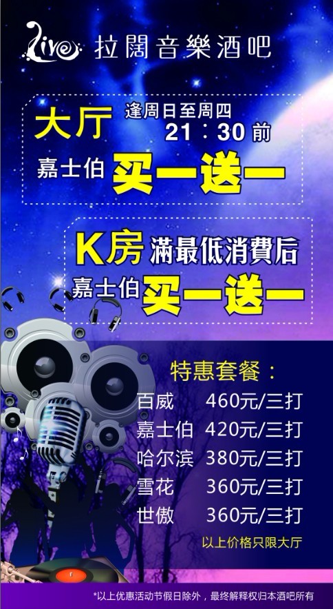 参加演出者可享受拉阔酒吧赠送VIP会员卡一张