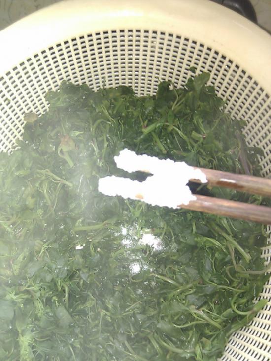 可以了,就用筷子把菜捞到篮子里,让水分和热气尽快散去。