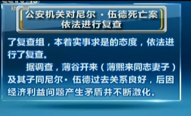 经复查,现有证据证明尼尔・伍德死于他杀,薄谷开来和张晓军(薄家勤务人员)有重大作案嫌疑。