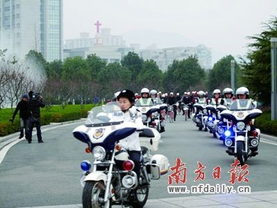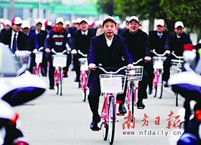 看、、、我们的领导连踩个自行车也有警车开道、、、多威风、、