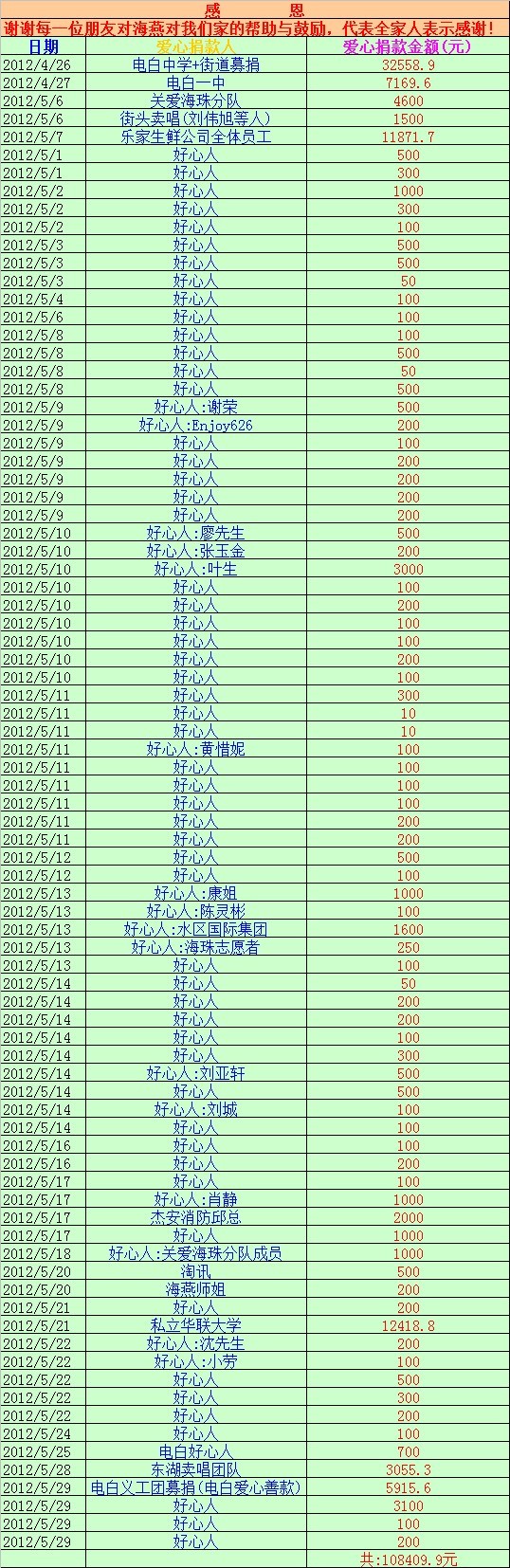 水 水东吴海波 小学二年级 注册 2012-05-04 消息 180 反馈评分 0 点数 0 2012-06-05 #163 社会爱心捐款明细如下,谢谢,感激,感恩... [attachmentid=295878] 附件 未命名.jpg 363.3 KB · 查看: 488