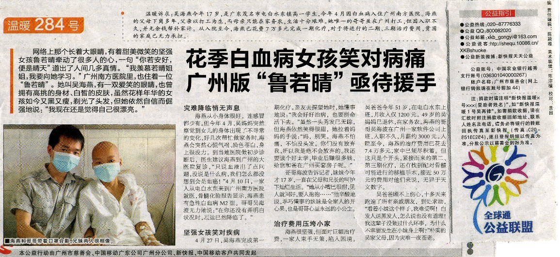 乐在其中 :http://0668.cc/index.php?showtopic=190179 救救患白血病的17岁女孩吴海燕! 10:39通过QQ空间赞评论(1)转发 乐在其中 : 祝愿;吴海燕(水东老乡)早日康复