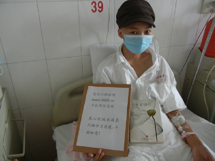 像海燕哥哥所说的,见到海燕时,海燕的身体,心理状况都比之前好多了。。。之前她也曾一度厢澹后来也有很多志愿者去看望鼓励过她,还有师生对她默默地支持,也给她看到了论坛上大家对她的祝福,她看到,感受到了大家对她的支持,慢慢地,她学会了坚强与坦然。。。海燕妈妈也让我们对各位同乡说声谢谢。。。