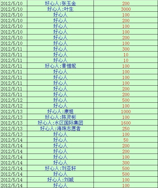 因个人疏忽,写上表格时候写错了!水区国际捐赠的善款为1600元! 在此向B哥,水区国际集团深表歉意... 实际捐款明细如下: [attachmentid=294816] [attachmentid=294817]