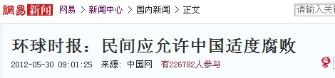 环球时报:要允许中国适度腐败 民众应理解 (1人在浏览)