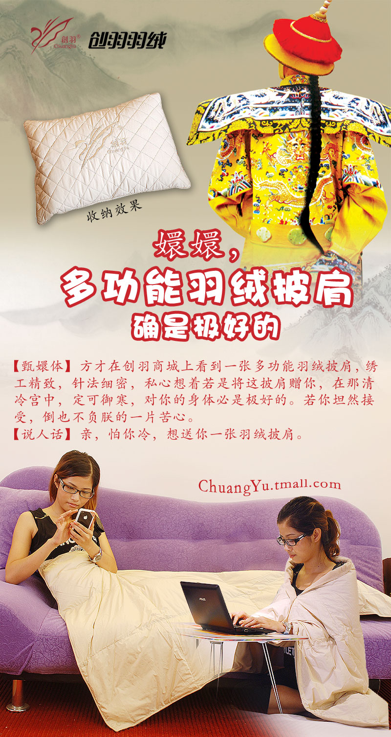 国产专利多功能羽绒披肩,办公室小资必备(创羽“甄?痔濉保