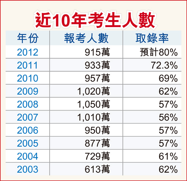 被称为莘莘学子"青云路"的全国高考今天开锣,但今年的报考人数却再跌2%至仅有915万人,连续四年下降,部分地区的考生数目更创历史新低。