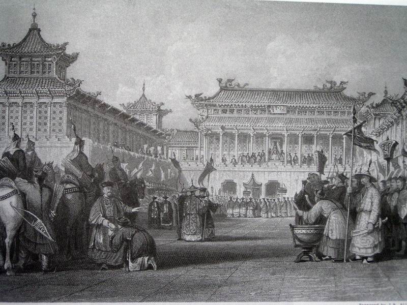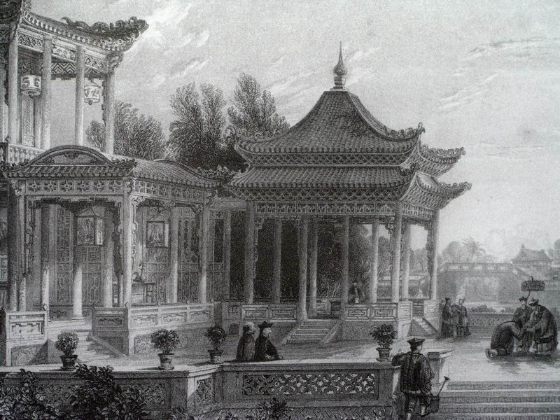 阿罗姆没有到过中国,他借用了别人的素描稿,重新画清国。目前所知,他主要借用了1793年访问清国的英国马嘎尔尼使团随团画师威廉-亚历山大的画稿。