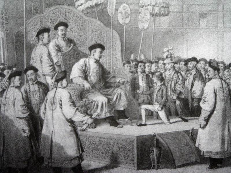 马嘎尔尼使团来北京受到皇上的冷遇,回去后说:来的时候象乞丐,到北京象囚徒,回家路上象流浪汉。但大清国却让英国人垂延三尺
