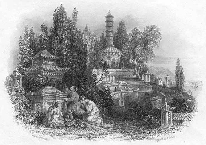 阿罗姆的画册出版前不久,19世纪30至40年代,英国伦敦的海德公园角举行过一次中国灯笼展览。赖特在介绍这幅作品之时,回顾了当年轰动全伦敦的展览。那是一只从中国运来,只偶尔在大典上使用的华丽灯笼,集雕刻、镀金、丝绸、刺绣和流苏工艺之大全的杰作。