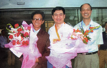 5 月 1 日 ,学院举行了简单而热烈的欢迎仪式。章启明等院领导和瑶湖校区机关干部、本部部分教师等参加了仪式。于果胸佩金光闪闪的“全国劳模奖章”返回学校,让在风雨中等待多时的学院领导和教职工们激动万分。当于果发现人群中的本部教师刘英卫时,便走上前去向这位当年的全国劳模献上了一大簇鲜花,并和他合影留念。这时,欢迎现场响起了经久不息的热烈掌声。欢迎仪式上,于果还发表了简短的讲话。他说,我要真诚感谢大家这么多年来对我工作的支持。我还是那句话,荣誉属于过去,我们一切都要从头开始。