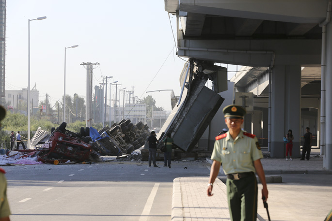 超载现象这回闯大祸了。本来我们在东北的道路设计都故意留有陷阱,专门对付日军或苏军的:一旦他们的坦克上了我们的桥面,就会意想不到的地方掉下去,我军只要用手榴弹就可以解决他们的重装集群。这次事故暴露了实力,可能会导致我军的国土防御战略方案的大调整。