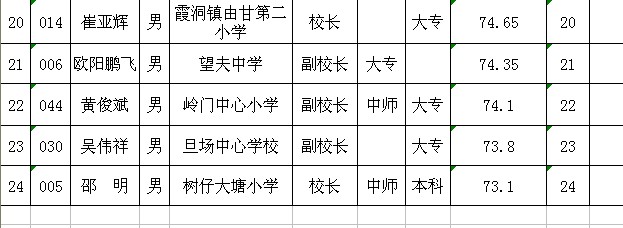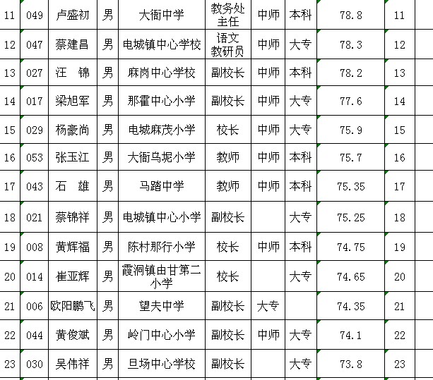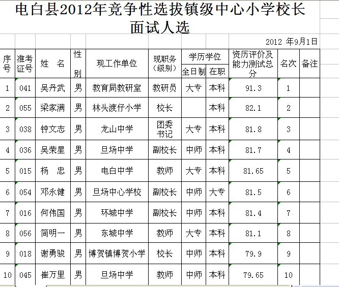 电白县2012年竞争性选拔镇级中心小学校长入围面试人选公告