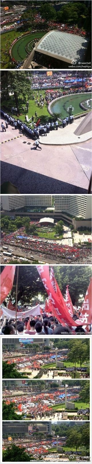 香港《明报》报导,广州有超过一万人参与反日示威,有示威者冲入日本驻广州总领事馆旁的花园酒店大肆破坏。