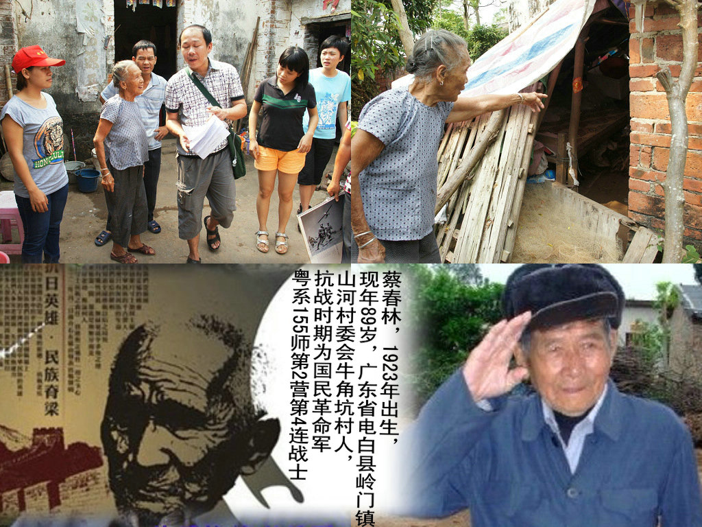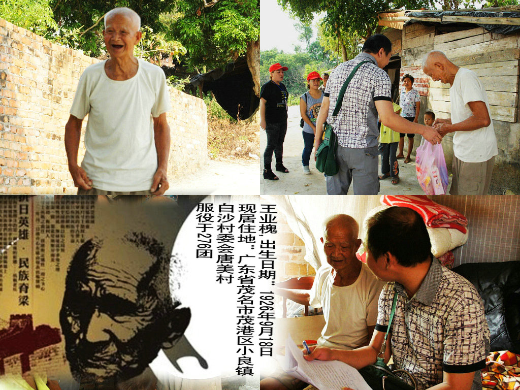第二站到小良镇白沙村委会唐美村(又名长尾村)拜访王业槐王老。王老单身在唐美村榕树头公庙隔壁一个简陋狭窄的地方的地方居住(见图,木板订着的就是王老的居住地)。耳朵还很利索,据老人说,牙齿不好,很多东西吃不了,风湿骨痛。老人在抗日战争中曾被子弹打中手臂穿过,说起打日本他说:爽,因为是在报老父亲的仇。解放后曾参加过师派。目前依靠微薄的200元低保生活,极其困难。